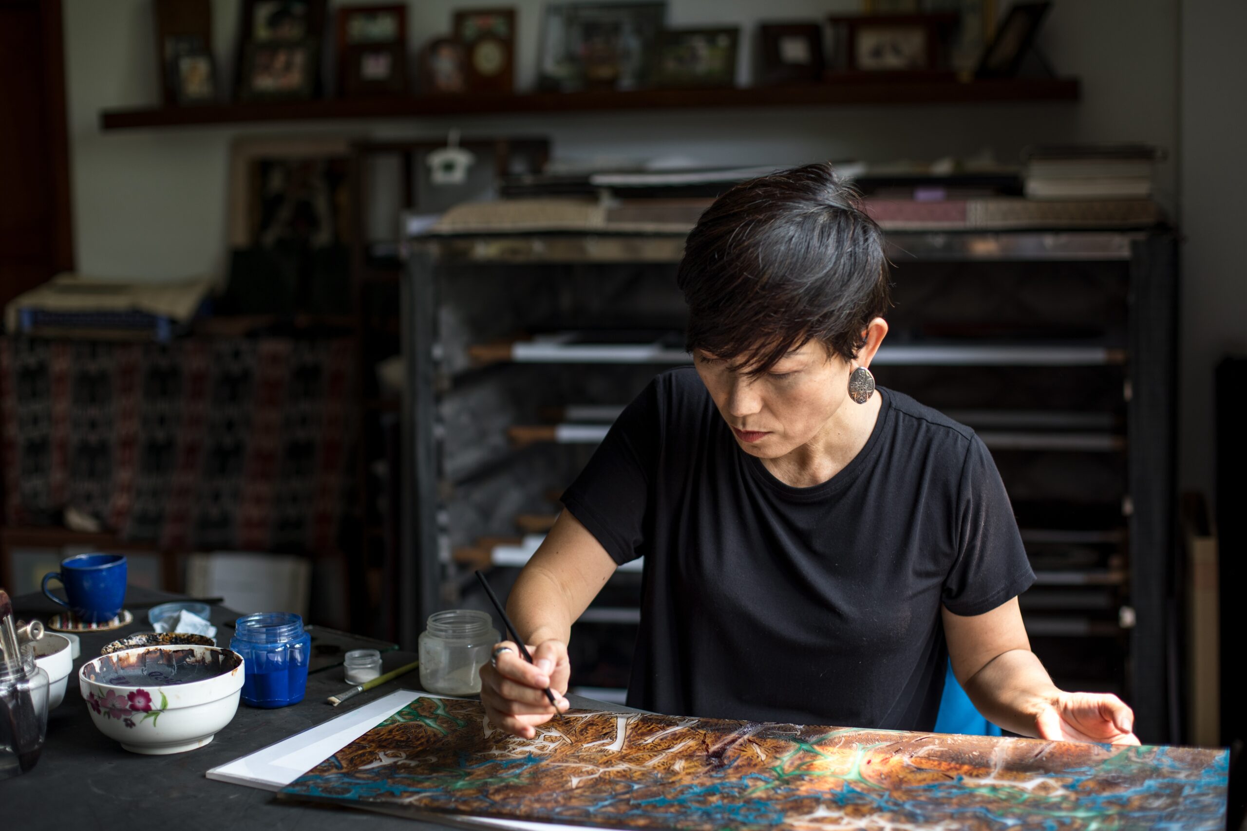 Saeko Ando is an acclaimed contemporary artist whose luminous sơn mài lacquer paintings are recognized internationally for their meditative depth, refined surfaces, and sophisticated vision within the world of Fine Art.